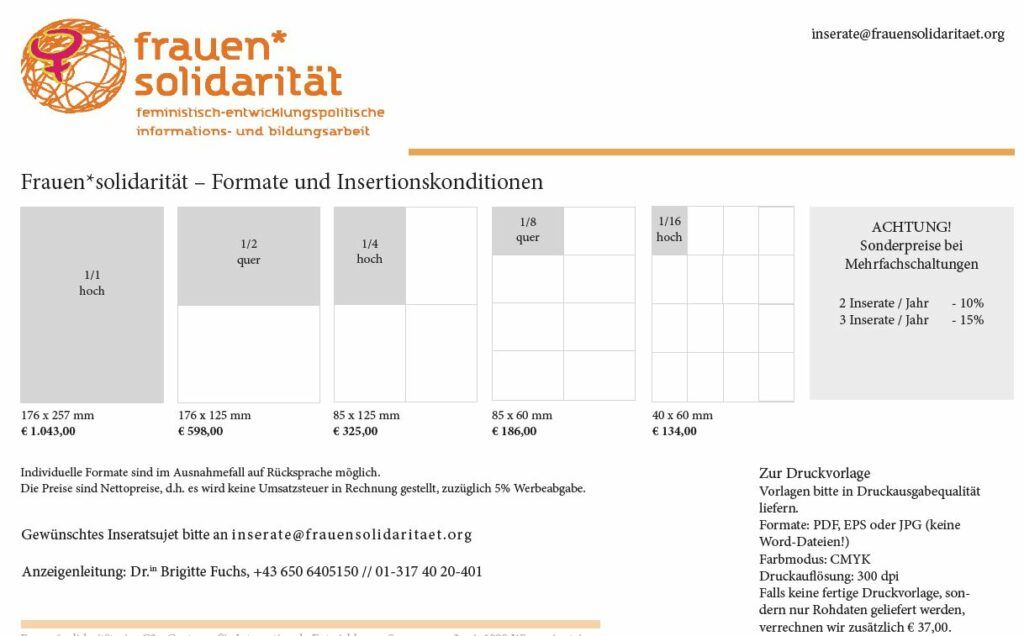 Frauen*solidarität – Formate und Insertionskonditionen